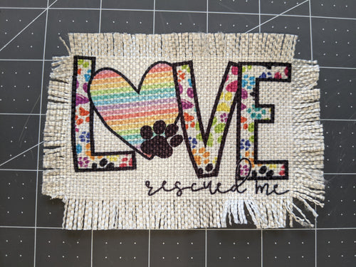 Love Rescued Me - paw prints - Sublimated Patch 2" x 4" Printed area