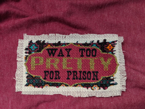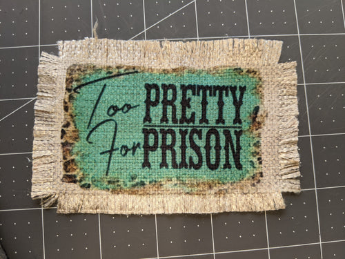 Too Pretty For Prison - Sublimated Patch 2" x 4" Printed area