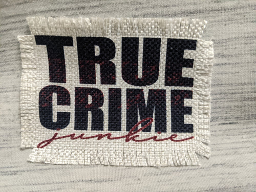 True Crime junkie (stretched out) - Sublimated Patch 2" x 4" Printed area