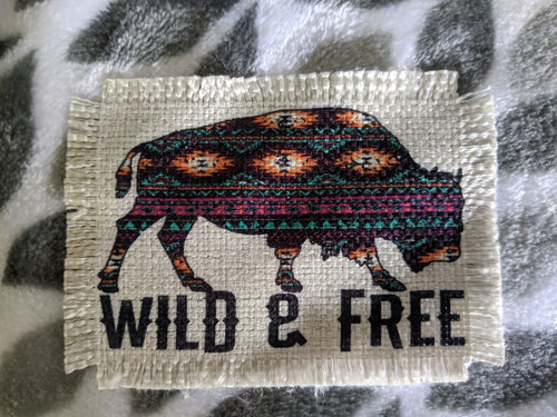 Wild & Free w/Buffalo - Sublimated Patch 2" x 4" Printed area