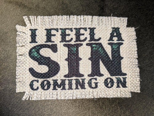 I Feel a Sin Coming on - Sublimated Patch 2" x 4" Printed area
