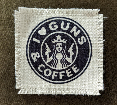 I love guns & coffee - Sublimated Patch 2" x 4" Printed area
