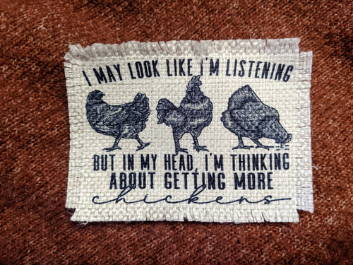 I may look like I'm listening but in my head I'm thinking about getting more chickens - Sublimated Patch 2" x 4" Printed area