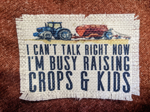 I can't talk right now I'm Busy raising crops & kids - Sublimated Patch 2" x 4" Printed area