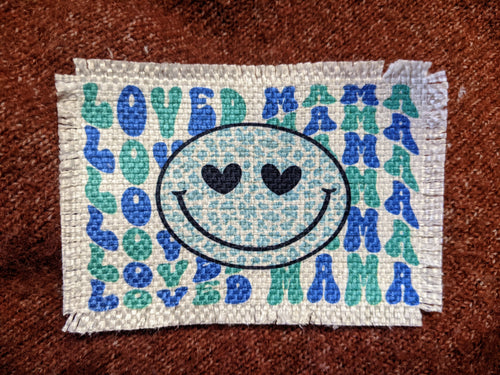 Loved mama - blues - Sublimated Patch 2" x 4" Printed area