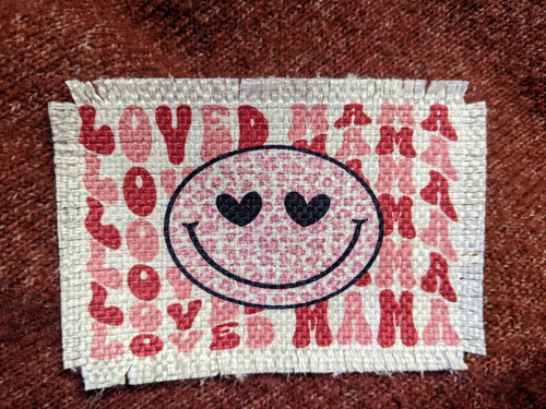 Loved mama - reds- Sublimated Patch 2" x 4" Printed area